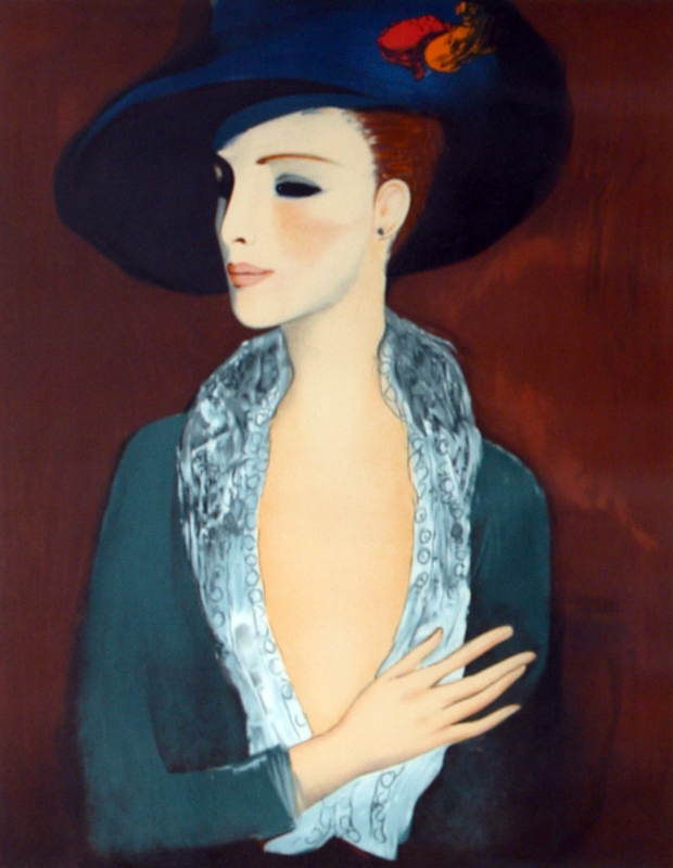 Elégante au chapeau bleu